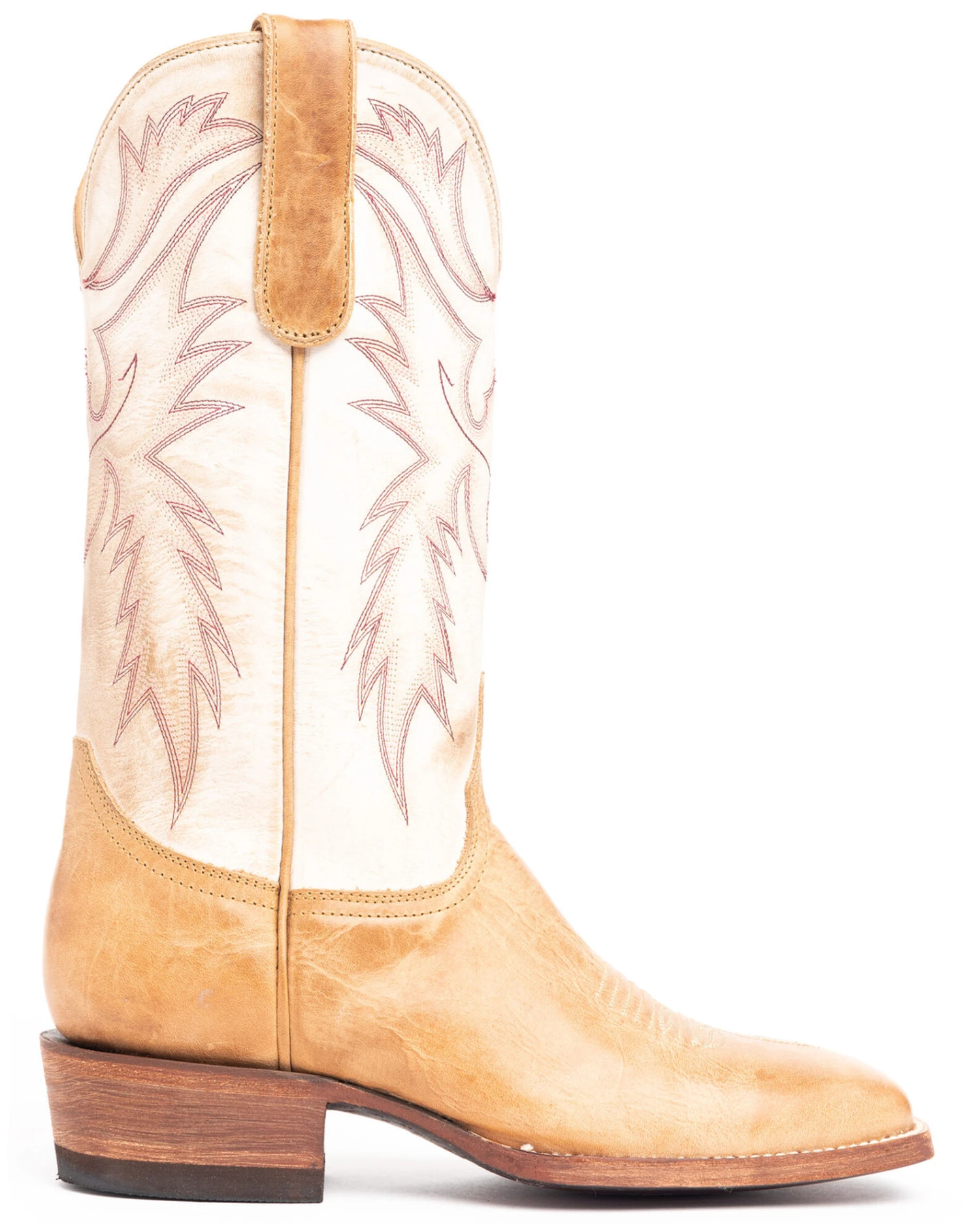 - Tan vamp with white shaft